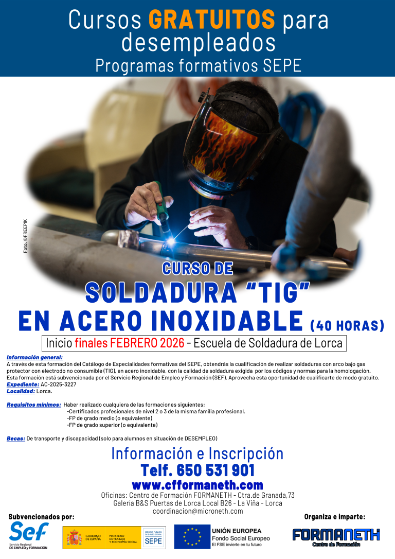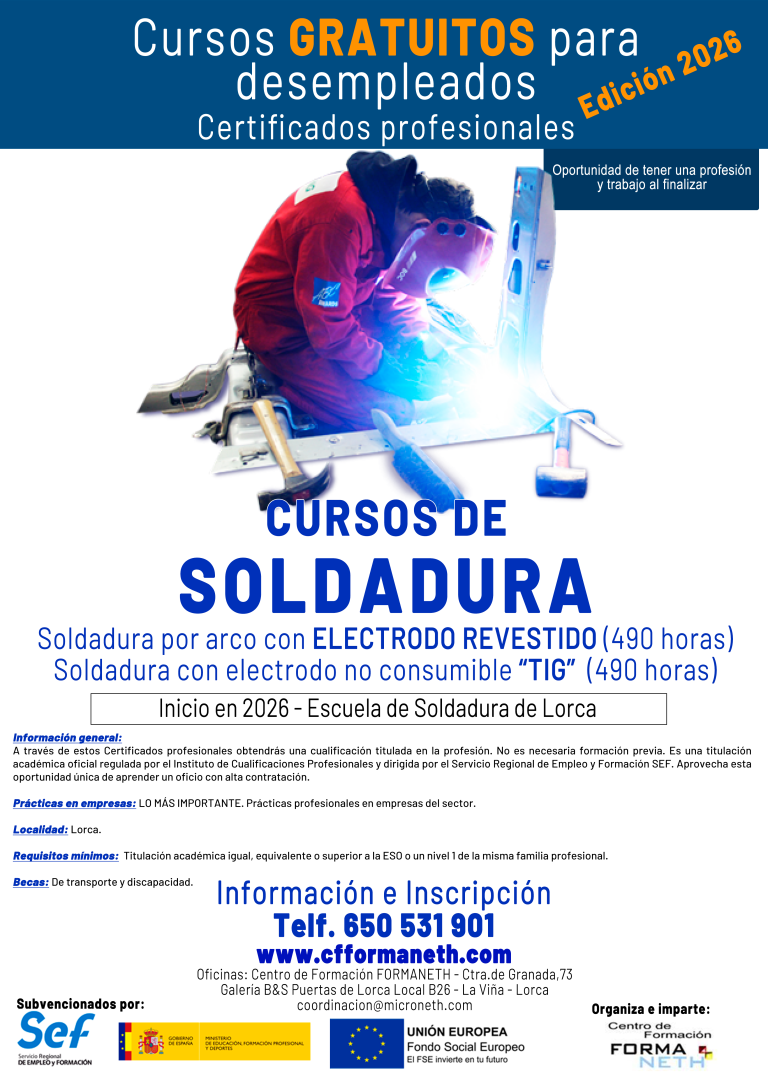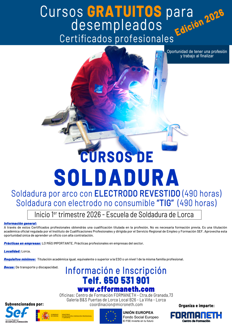 La Escuela de Soldadura de Lorca, está situada en el Polígono industrial Saprelorca, Avda. José López Fuentes, 4, nave 2.